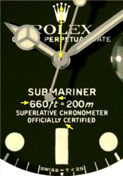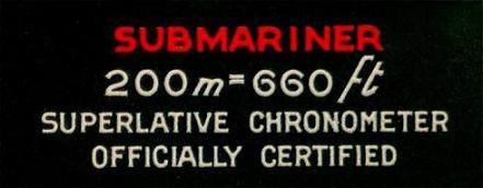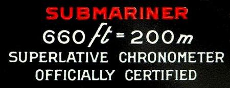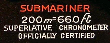 Cadran 200/660 avec le submariner écriture rouge plus large ou aussi large que les avis de profondeur. Autre détail important, la forme caractéristique du « f » de 660ft qui est de forme courbée et longue, il recouvre le haut du « t ».