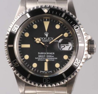 En 1969 Rolex lance la 1680, c’est la première submariner avec la fonction date, elle est munie d’un verre acrylique de profil plat dit « verre cheminée »par le fait qu’il dépasse de 3mm du bord de la lunette. Pour la première fois sur une submariner, une lentille cyclope est collée à l’extérieur du verre pour faciliter la lecture de la date. La lunette est bi-directionelle et sa rotation n’est pas crantée. C’est aussi avec ce modèle que la marque pour la première fois décline en version tout or, un modèle sport. La 1680 a été produite jusqu’en 1979.