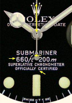 Le L de Rolex est parfaitement centré,La barre supérieure du F de 660Ft est bien entre les jambes du M de submariner,le C de certified est bien centré sous le H de chronometer,les 6 de 660 sont fermés.