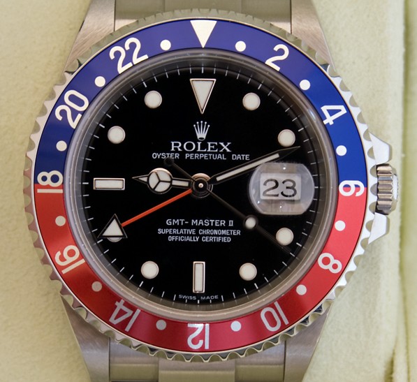 Fin de la production et remplacement du modèle par la nouvelle GMT MASTER Ref 116710LN à lunette céramique.